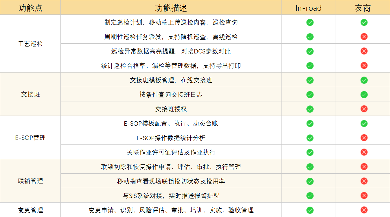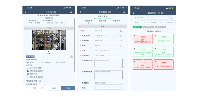 工智道工藝管理系統幫助企業將先進的標準操作規程執行落地;全流程電子化監管變更過程,控制變更風險;實時掌握聯鎖狀態、投用率,提升聯鎖現場管控及預警;根據崗位自動抓取交接班信息匯總生產簡報,滿足交接班業務中流程合規、信息匯總和過程記錄的管理需求。