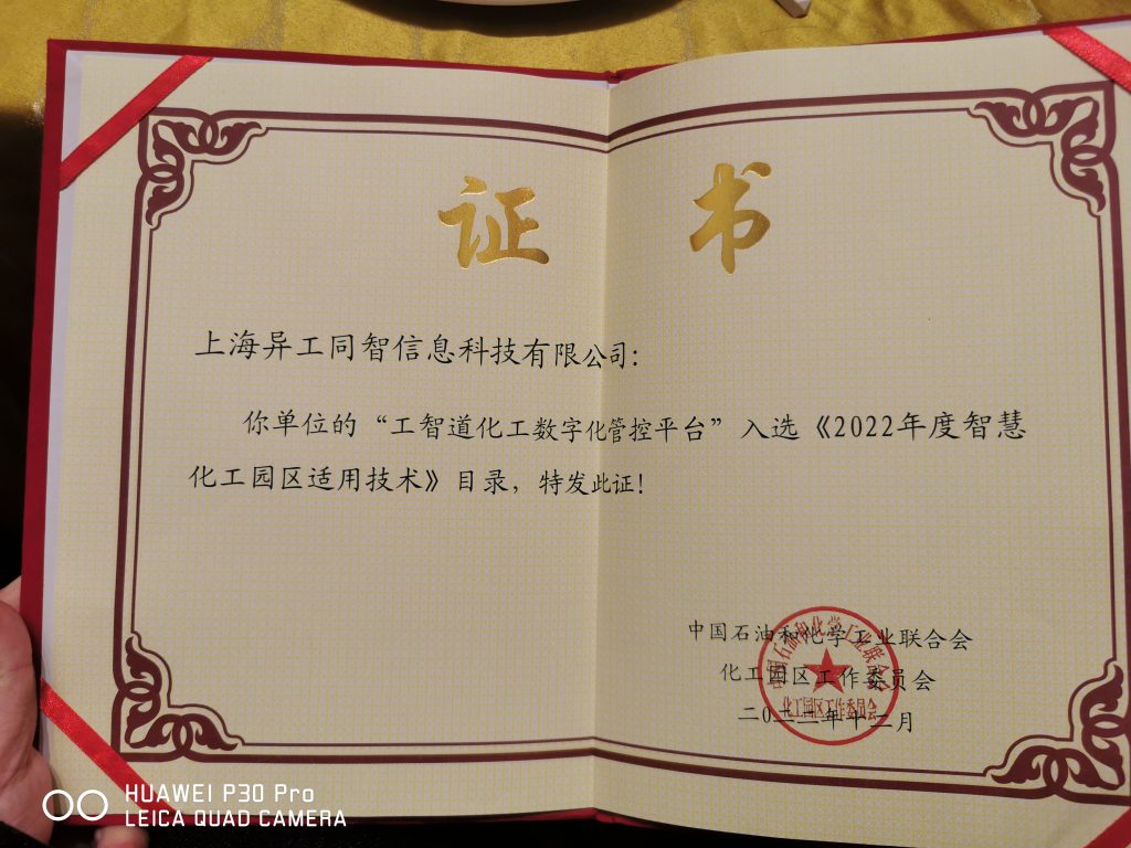 會上舉行了2022年(第二批)智慧化工園區(qū)適用技術(shù)目錄發(fā)布儀式。工智道化工數(shù)字化管控平臺入選。